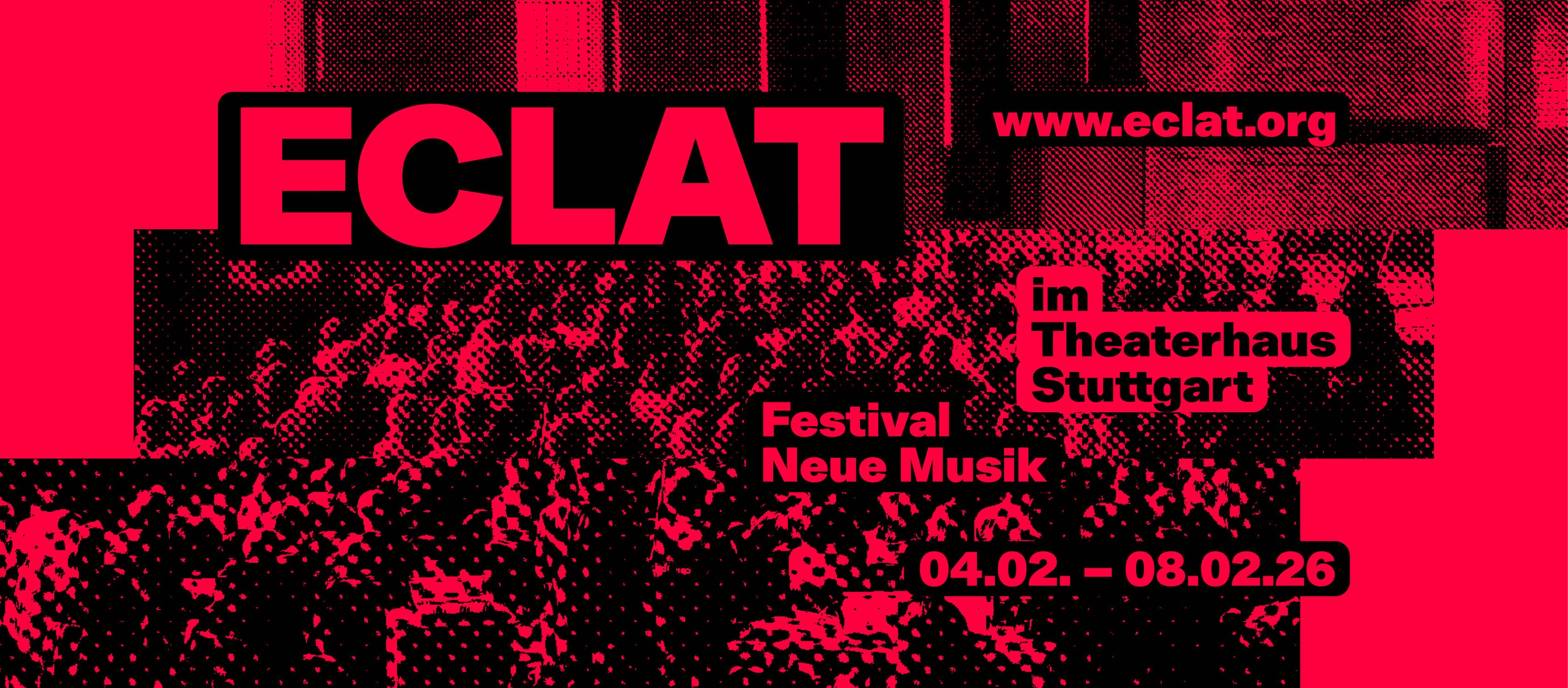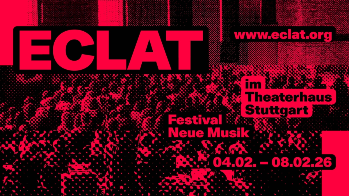 04. - 08.02.2026Als Festival der freien Szene behauptet ECLAT Festival neue Musik Stuttgart seinen wichtigen Platz neben den großen Rundfunk-basierten europäischen Festivals neuer Musik. Mit einem Schwerpunkt auf Künstler*innen, die virtuos die Möglichkeiten digitaler Medien ausreizen im Spiel mit den Genres, im Auflösen von Raum, Perspektiven und Funktionen, stellt ECLAT seinem neugierig-aufmerksamen Publikum eigensinnige interdisziplinäre Formate zwischen Musiktheater, Performance, Installation und Konzert-Inszenierung vor.